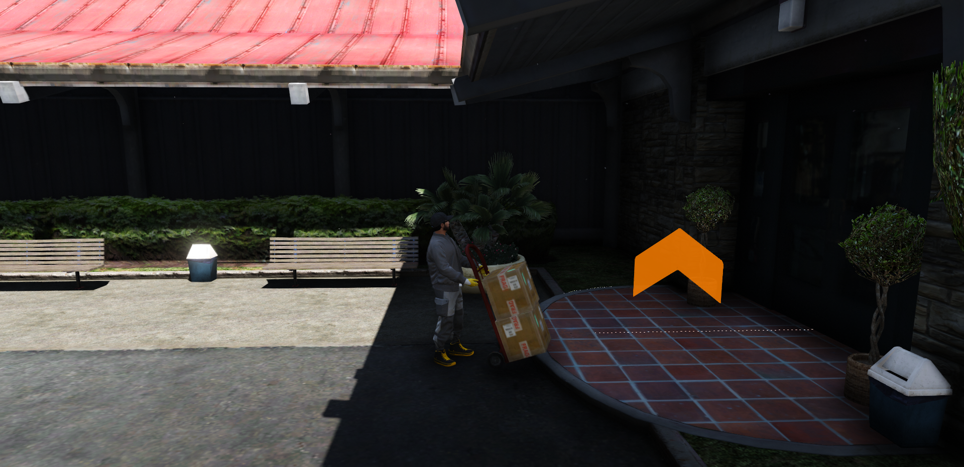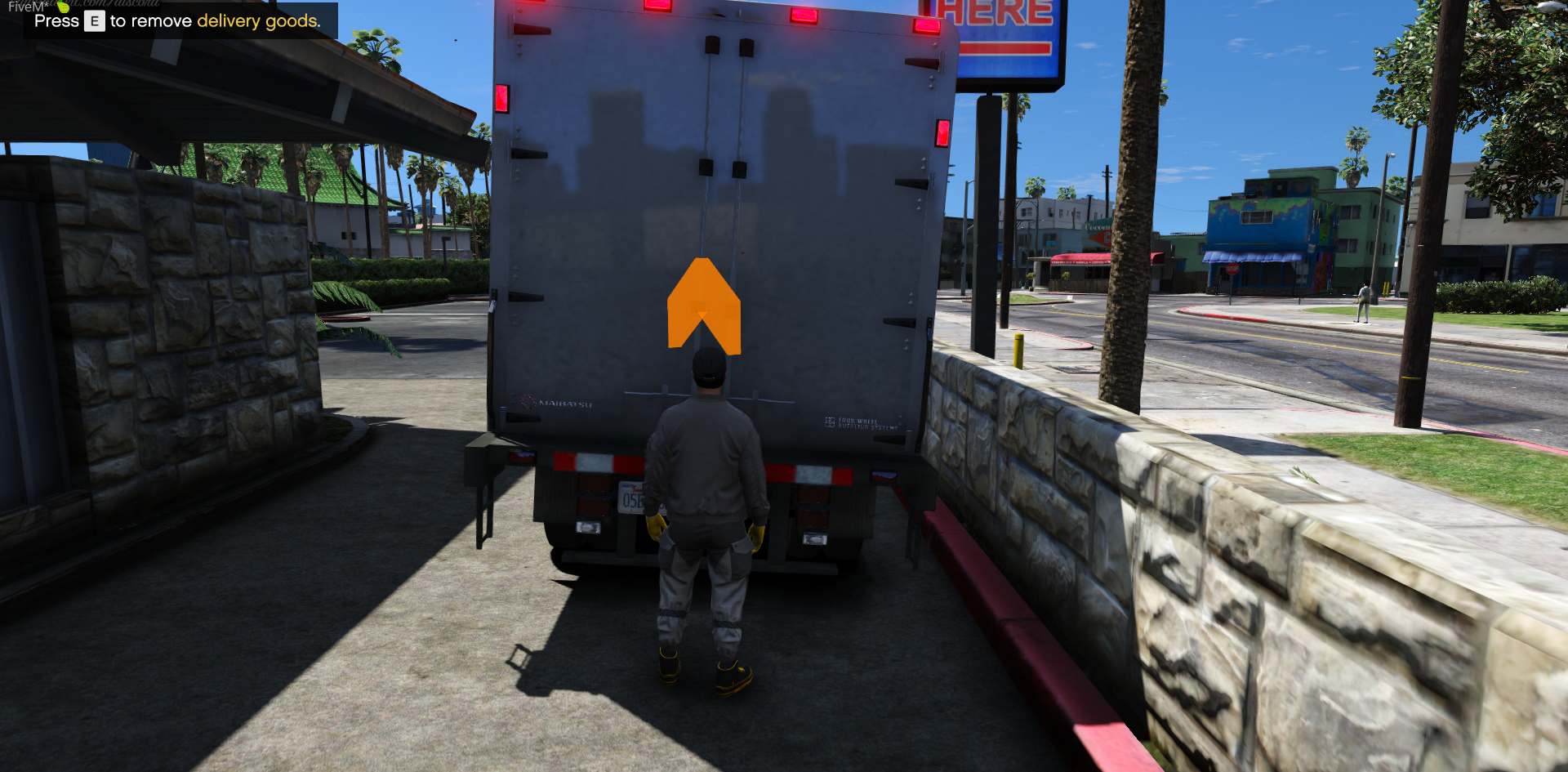 Get in the spawned vehicle and follow the route on your gps. You will have 7-10 stops before returning to the depot. Once at your delivery site drive in to the marker and get out. Walk to the new marker to pull out the deliver.