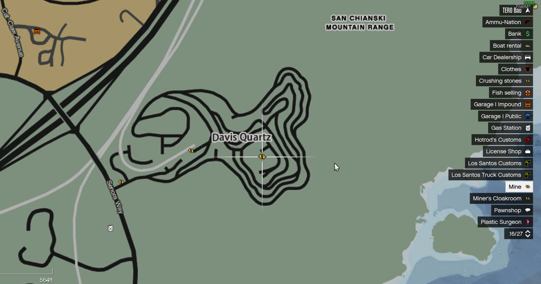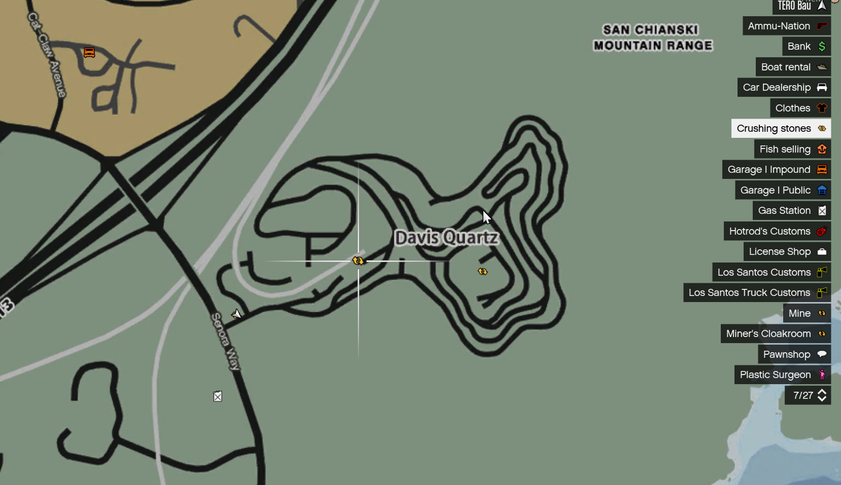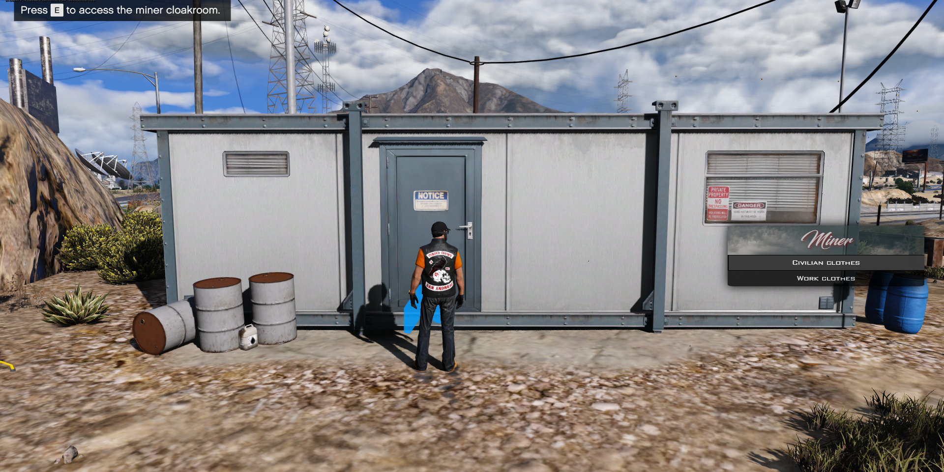 To start mining, proceed to the miners cloakroom at the entrance of the quarry in Sandy Shores. Take your work clothes and you map will update with the mining locations.